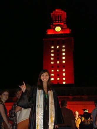 Here’s Elissa at another major event in her life, her UT undergrad graduation. Hook Em!