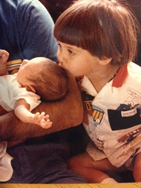 Brett planting a kiss on his newborn sister Elissa.