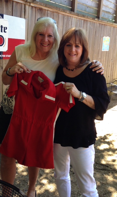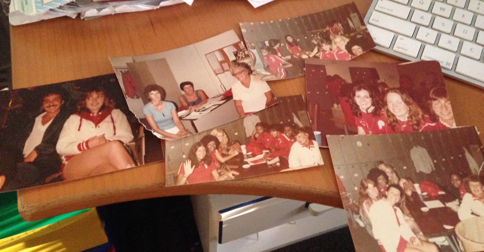 I made Lisa laugh when I brought our old hot pants uniform that I saved all these years and we took this photo together with it. She enjoyed seeing all of my rescued photos and remembered a lot of the girls in them.
