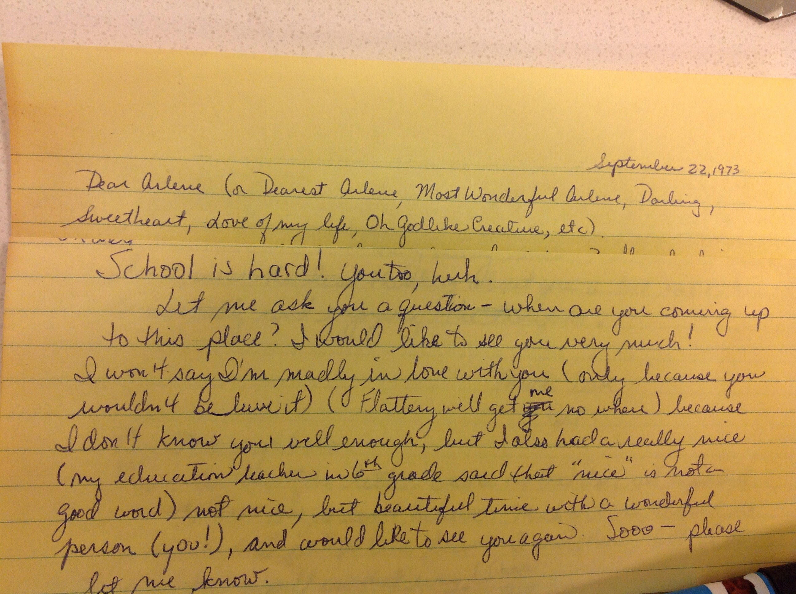 I kept his sweet letters he sent me for an entire school year before he gave up on me, and it is in my memorabilia box. This box was stored for 40 years at my parents house in Philly, until I moved my parents to Houston and rescued the box. I went through it and did not throw out the diaries and letters because they remind me of who I used to be.
