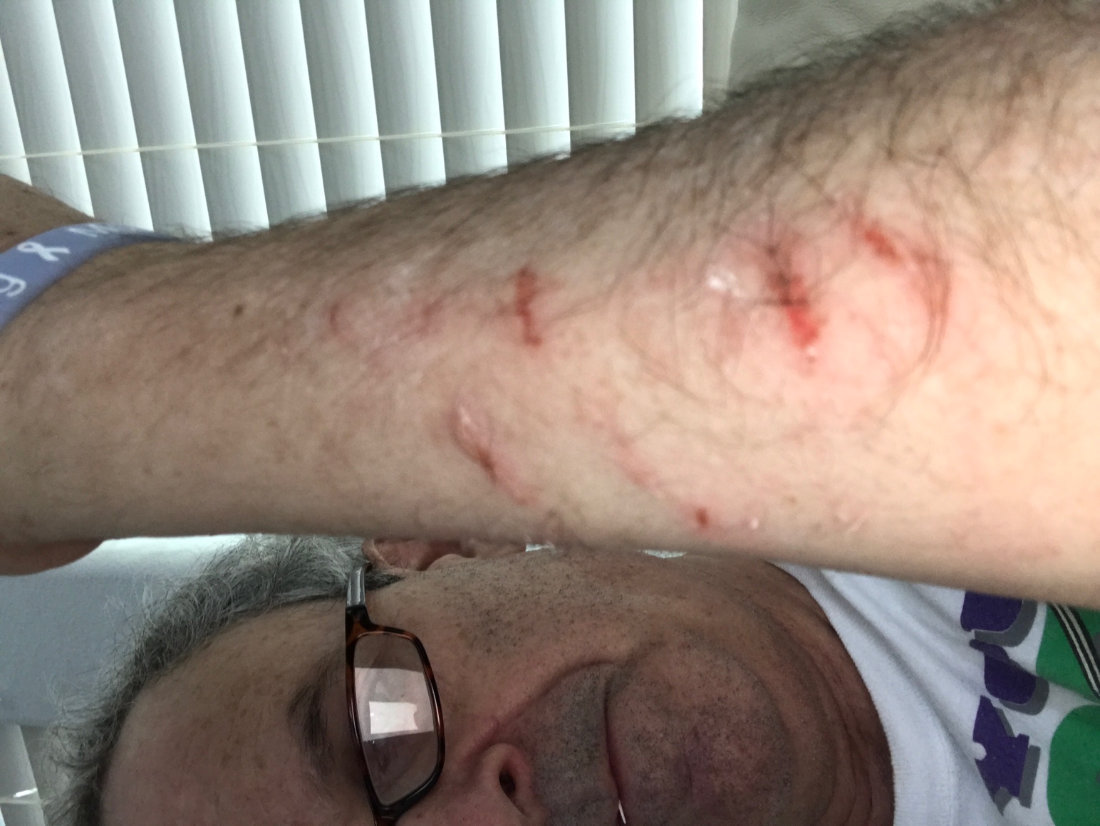Talk about sacrificing for your art! Suffering for Sourdough! (Side Note- Actual text to Gary: “Did you take any photos of your cut up arms? I need for my blog.)