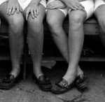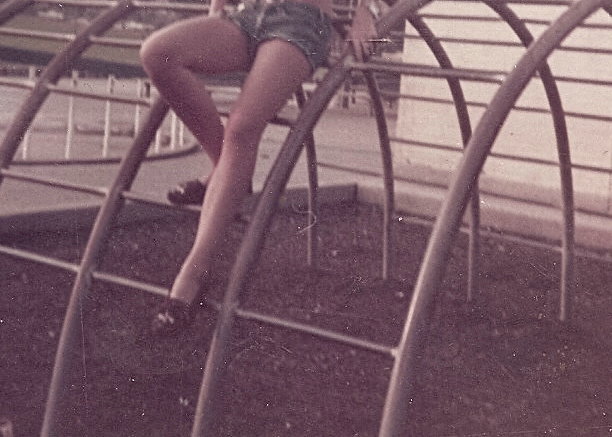Once purchased, as I said, they were the main staple item on my feet. They were a trend, and a cute one at that. I wore them until they wore out. Here’s a closeup of my legs at a playground with my beloved moccasins on my feet, taken in the early 70’s.
