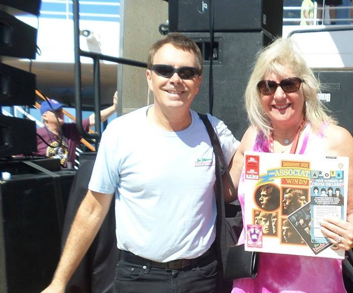 Aside from the shows, there were many opportunities for Autographs – long lines so I passed as I am not one for autographs – and mingling with the celebrities as well as going to Q & A sessions and up close interviews with them. As you can tell, I was busy from early morning trivia – our team was the undefeated champs all week – thanks Brilliant Six, to late night after the 11 pm pool party concerts. Peter Noone handed me his CD of all his hits after his show, and Linda got the drumstick of the original Guess Who drummer, Garry Peterson. I also won a red colored classic album remastered of the Association’s greatest hits: Windy, Never My Love, Cherish, and Along Comes Mary for a name that tune with Beatles Brunch radio host Joe Johnson
