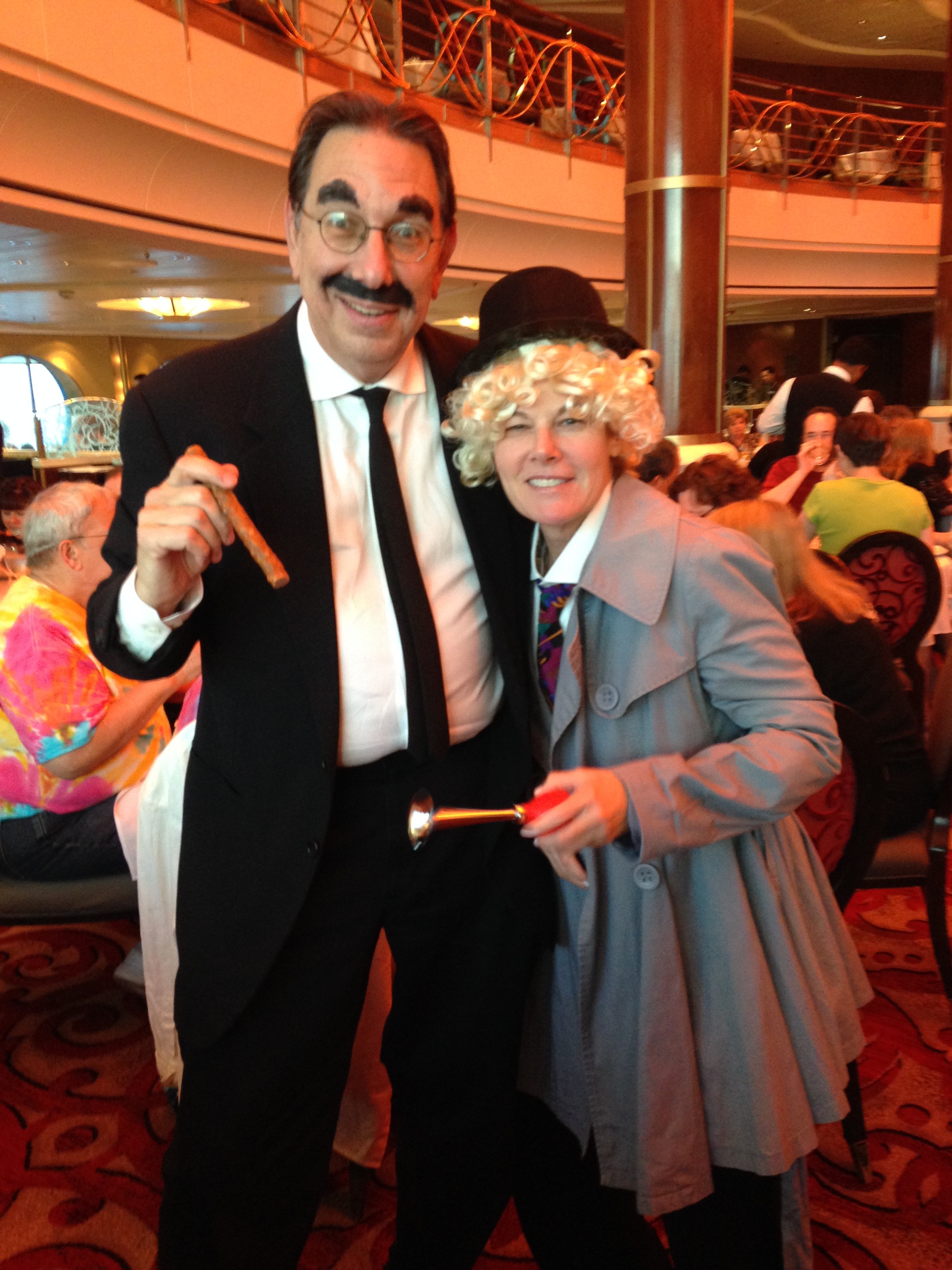 They also did fun things like Costume Night – pictured are Houston friends Jodi and Glenn (who wrote the Book, “We are Woodstock” which they gave out for prizes on the cruise.) There was also lots of dressing up from the Flower Power era but I did not do that, although I wore my light up boots a bunch, and they are always a crowd pleaser.