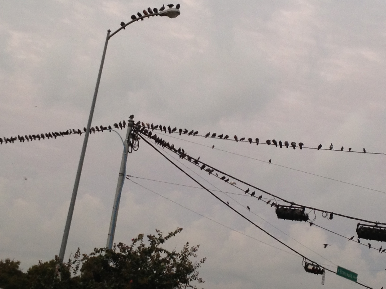 The crackerjack researcher I am showed me that lots of people are typing in the Google search “Why do birds gather on telephone lines?” Or “Why do birds gather at dusk?”